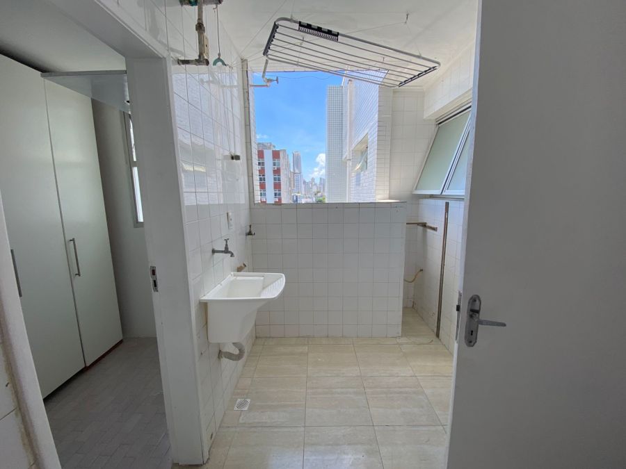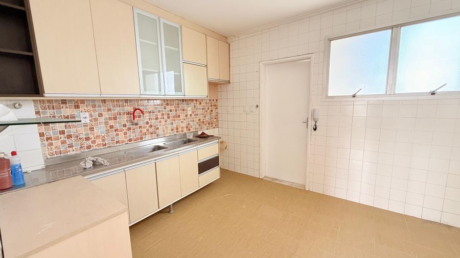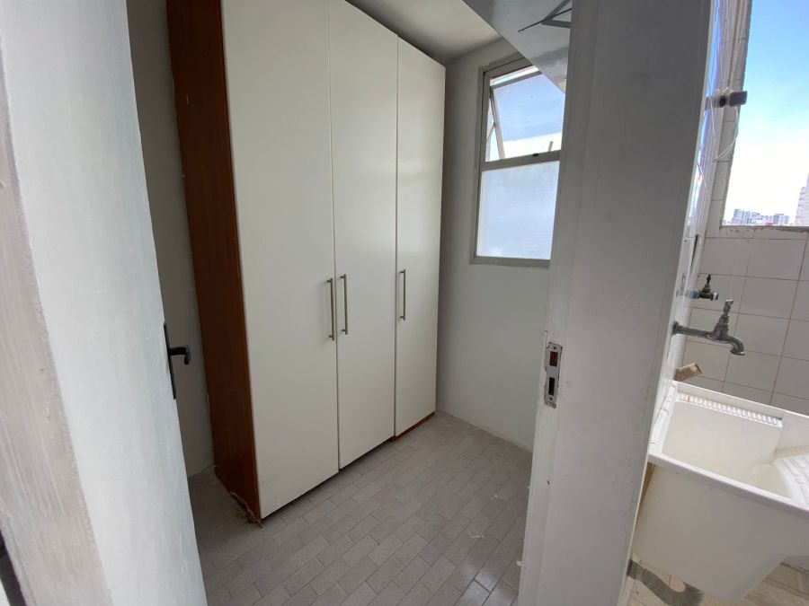 Parte principal com 3 quartos com armarios, sendo 1 deles suíte, banheiro social, ampla cozinha, área de serviço, dependência com banheiro de serviço.