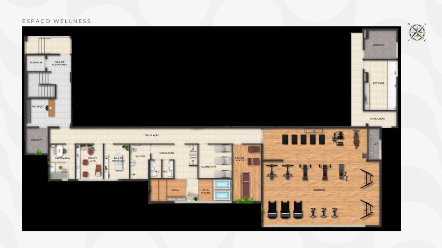 Infraestrtura de lazer diferenciada com Wellness Center, Coffee Shop, Espaço Kids e muito mais.