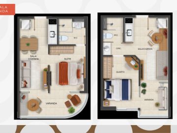 • Quarto e sala com varanda, a partir de R$359'000,00:
