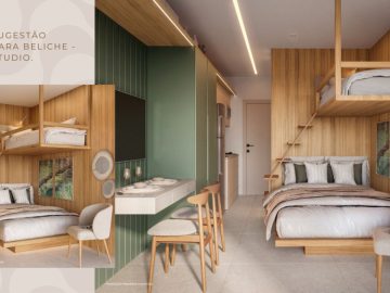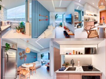 Opções de Studios, Quarto e Sala e Dois quartos, TODOS COM VARANDA.