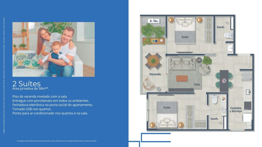 - Área Privativa: 58 m²