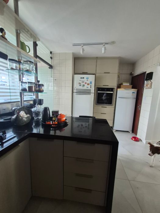 Parte principal conta com sala, varanda, cozinha, área de serviço, banheiro social, banheiro de serviço, 01 suíte, 01 quarto, ambientes com armários planejados.