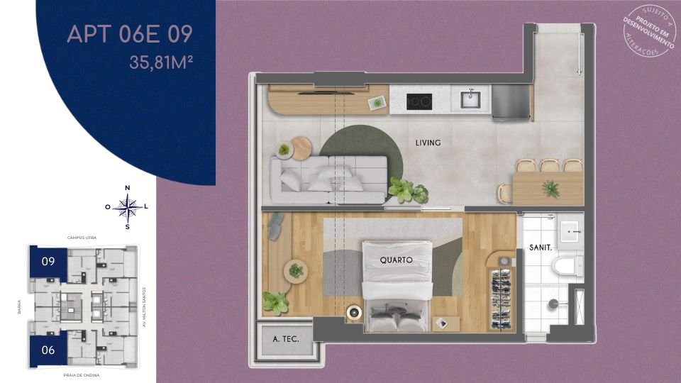 - Área Privativa: 61 m²
