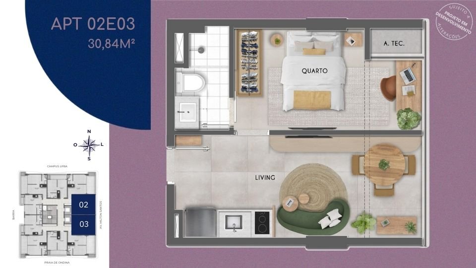 104 unidades | _Quarto e sala_ | 27 a 37 m²