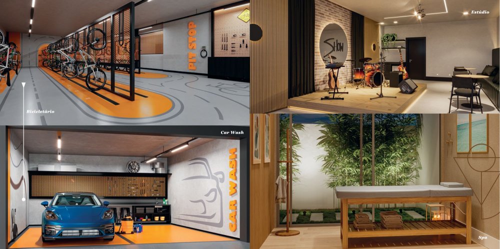 - 4 elevadores sociais, um para cada apartamento com hall privativo
