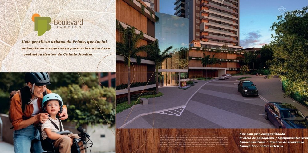 - Na parte alta do Cidade Jardim um Boulevard exclusivo do condomínio com piso intertravado, paisagismo, praça, vagas para estacionamento e espaço pet externo.