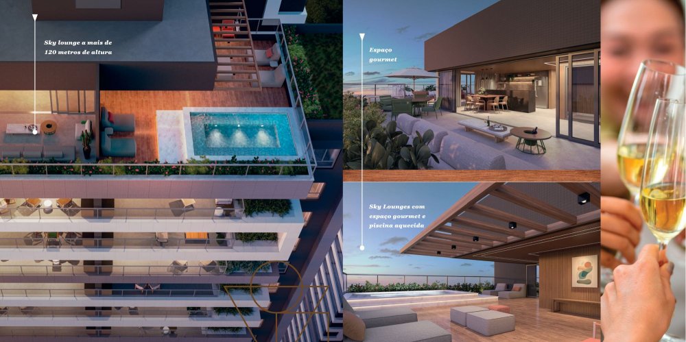 - Rooftop nas duas torres a aproximadamente 120 metros de altura com vista panorâmica da cidade, com piscina aquecida e espaço gourmet