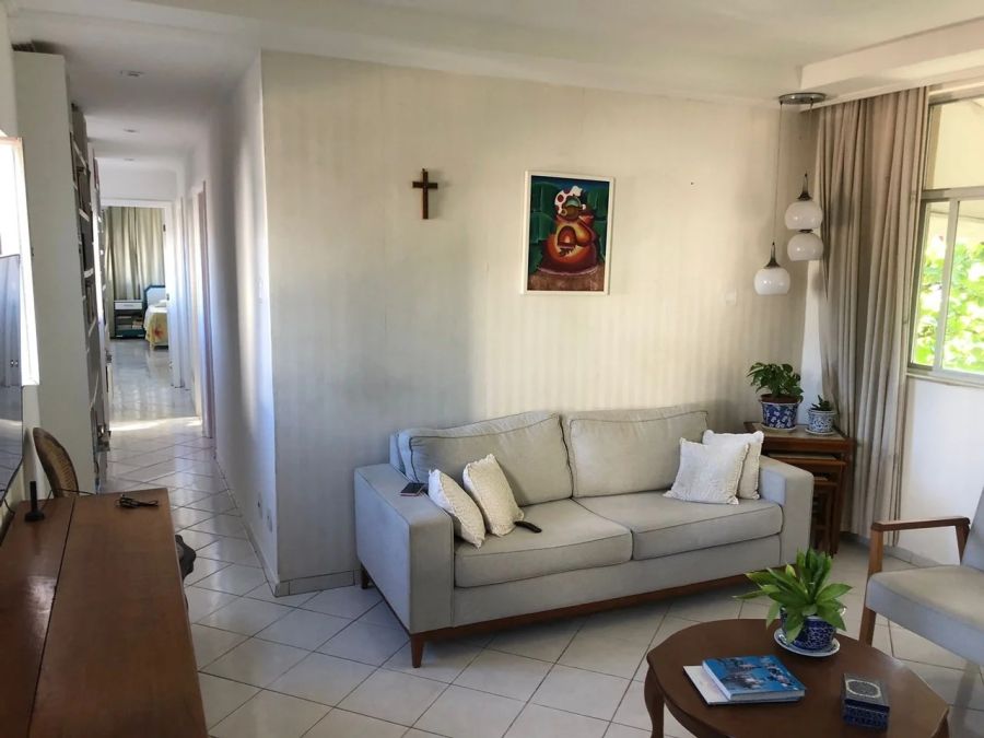 Apartamento nascente, com vista mar, 3º andar, escada, 3 banheiros, ventilação cruzada, numa localização privilegiada, rua plana, sem vaga de garagem, entretanto, com estacionamento na frente do prédio.