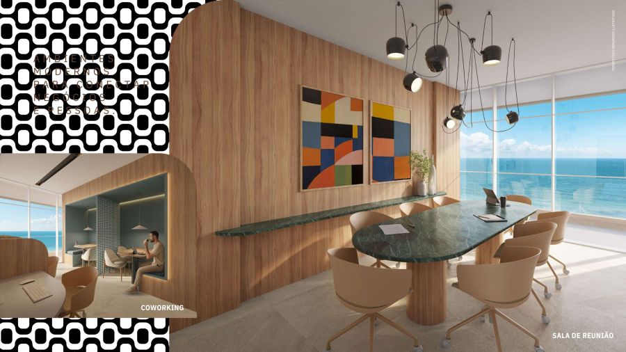 Espaço coworking e salas de reunião
