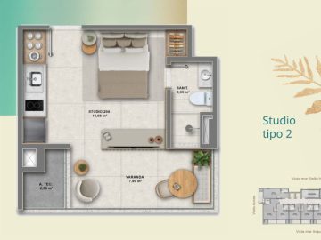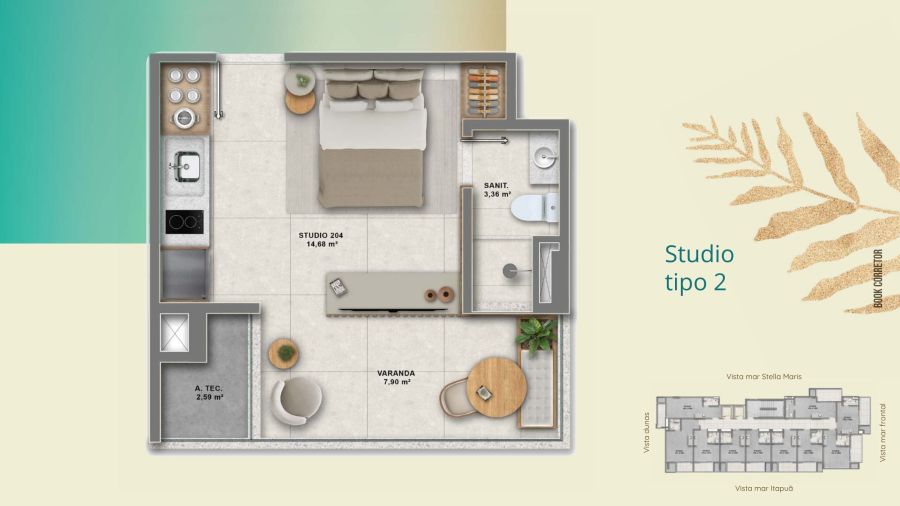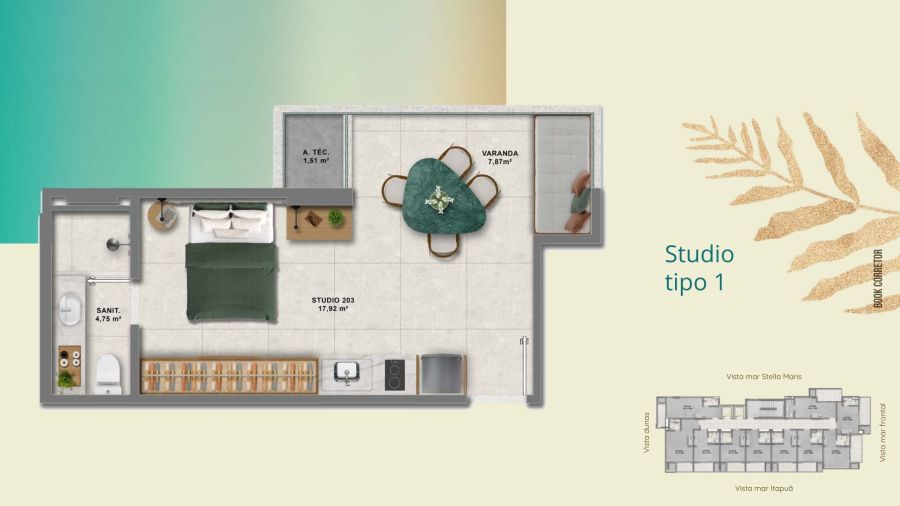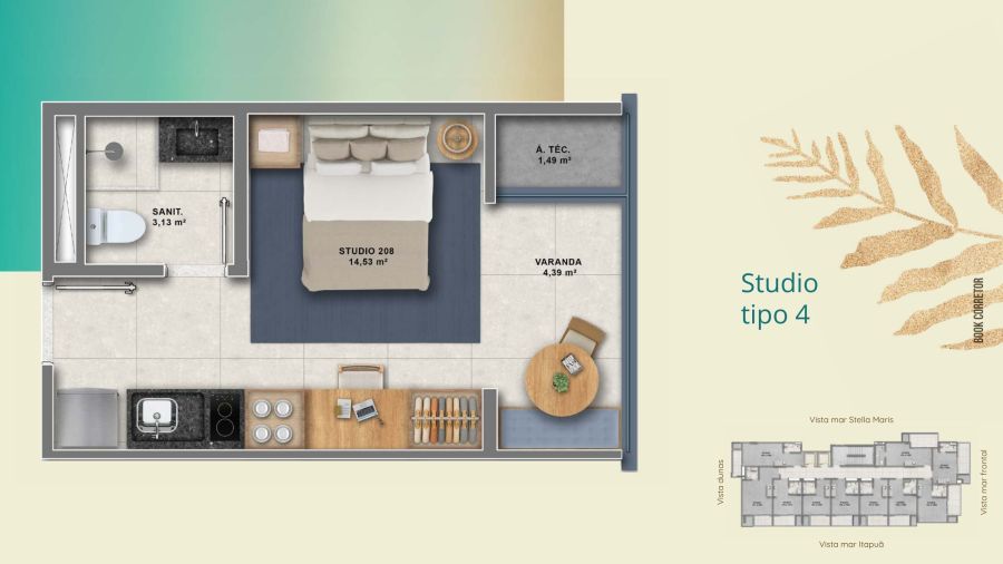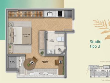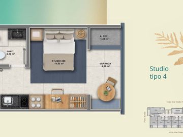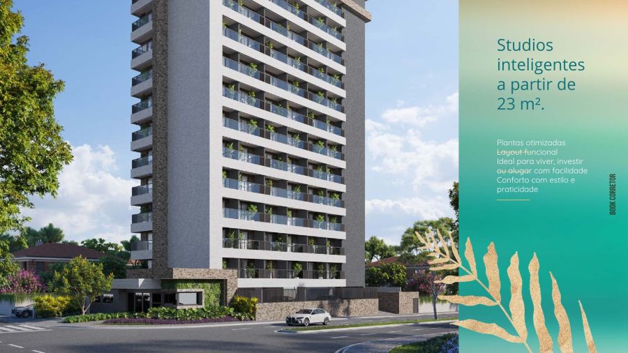 Studios modernos a partir de 23m², em empreendimento com infraestrutura completa, a 200 metros da praia.