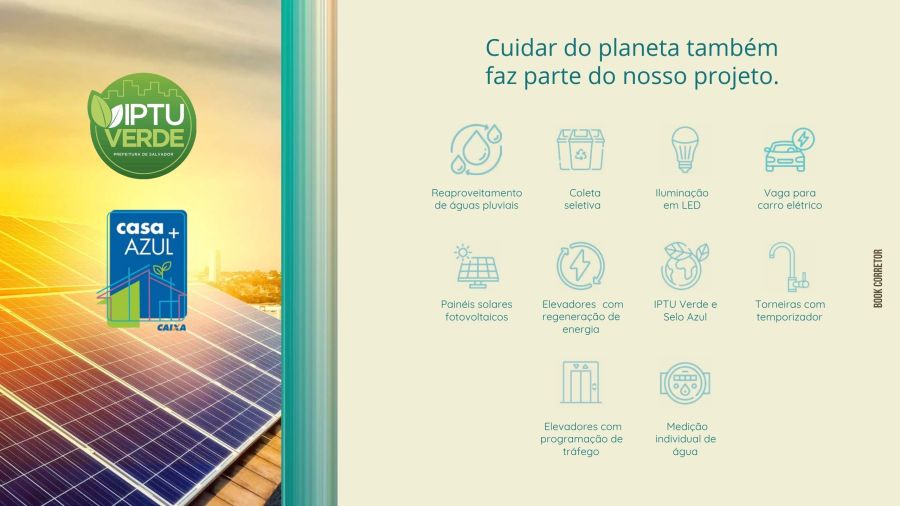 Comprometidos com o futuro, o Ilha de Maui possui IPTU Verde e Selo Azul (ambos Ouro), painéis solares e vagas para carro elétrico. Garanta sua unidade e viva o melhor da Pedra do Sal.