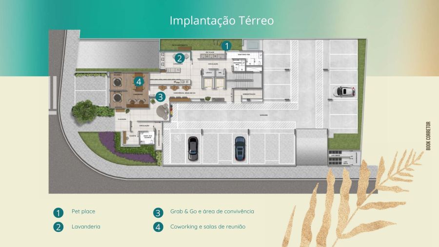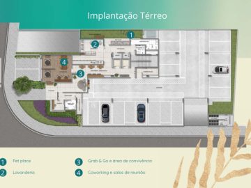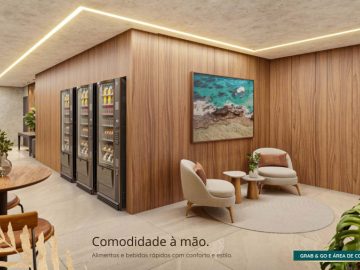 No térreo, encontre conveniências como pet place, área de convivência com Grab & Go, prancharia e bicicletário.